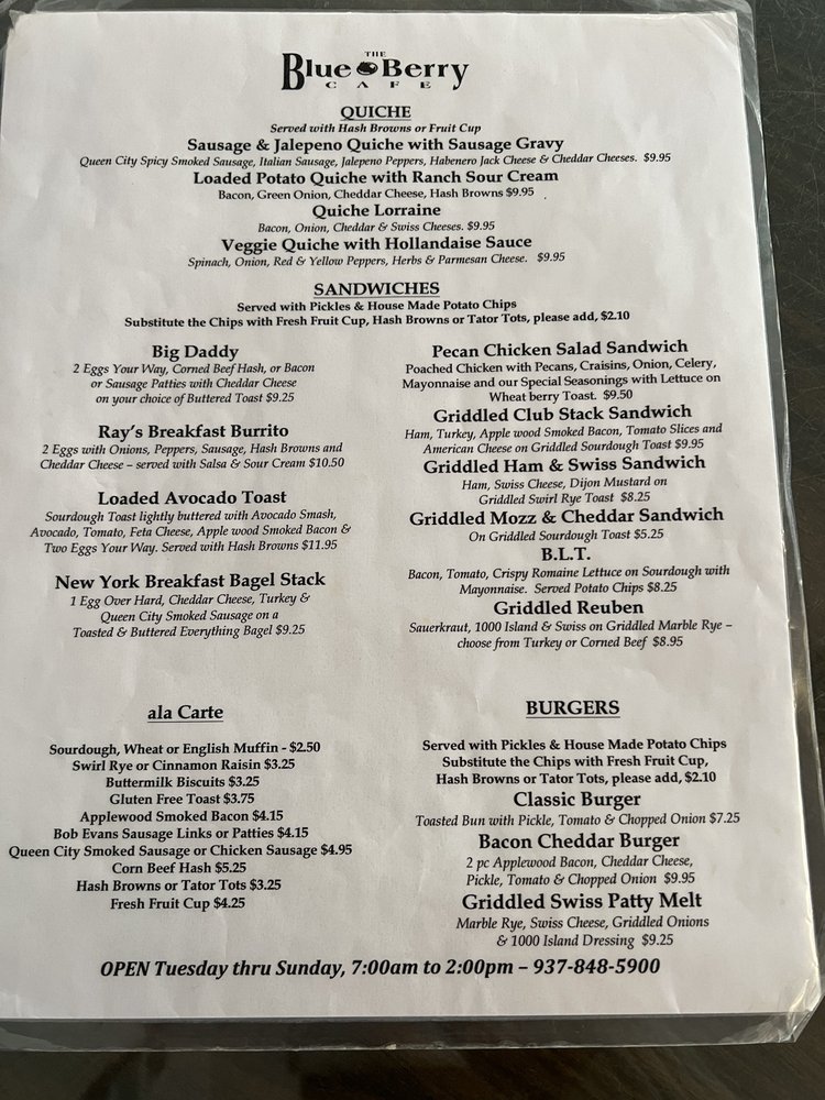 Introducing The Blue Berry Cafe, a popular breakfast and brunch spot in Dayton, OH. Known for its delicious food, quick and friendly service, and large portions, this cafe offers a wide range of options for both meat-eaters and vegans. Customers rave about the mouth-watering dishes, such as the peach and granola pancake, veggie omelet, and loaded avocado toast. The Muffin Man's creations are a must-try, with unique and flavorful muffin options available. With options for takeout, delivery, and catering, The Blue Berry Cafe caters to all dining needs. The cafe's cozy atmosphere, ample parking, and accommodating staff make it a top choice for breakfast or brunch. Don't miss out on this gem in Dayton - plan a visit to The Blue Berry Cafe today!